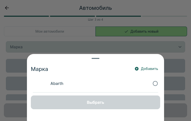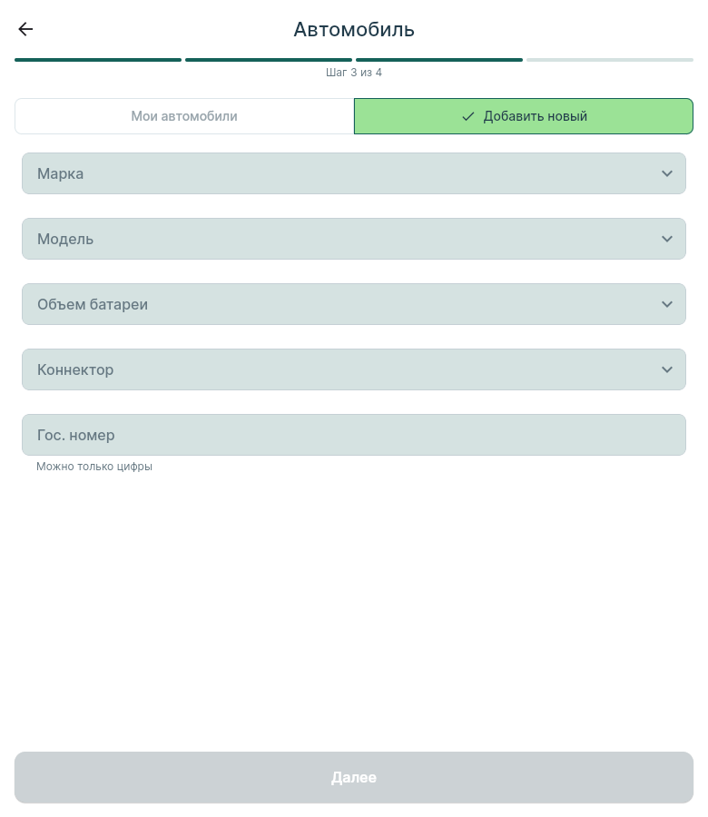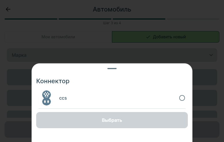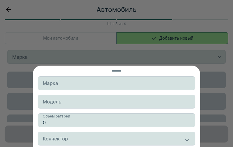 V2: ЧАСТИЧНЫЙ PASS — "+Добавить" в пикере марки открыл диалог (кнопка работает), но поведение отличается от сценария (ожидался текстовый ввод, получен диалог). V3: НЕ ПРОВЕРЕН — до пикера моделей не дошли. V4: PASS — поля батарея и коннектор в диалоге были пустыми (авто-заполнение не сработало для кастомной марки). V5: FAIL — форма зависла после отправки диалога. Кнопка "Далее" неактивна. BUG-1. |