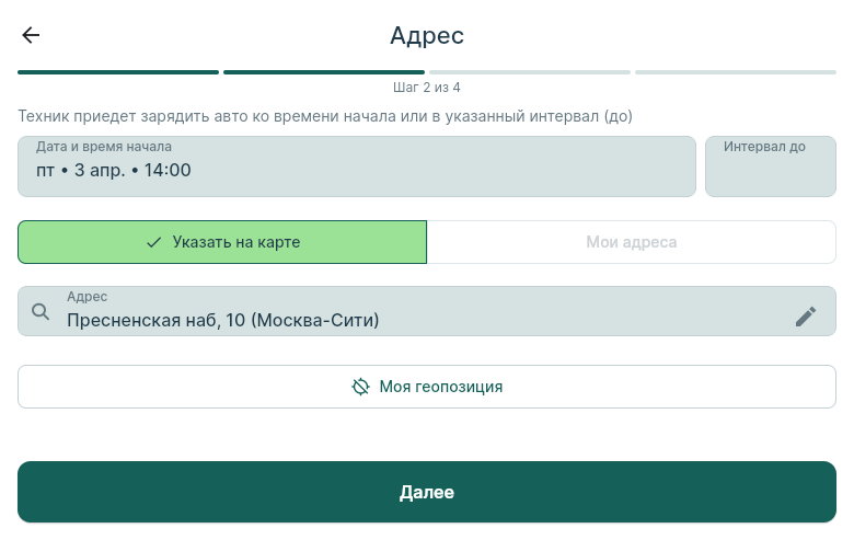| 2 | БЛОК A1: Дата / Адрес | Client | PASS | V1 PASS Неавторизованный пользователь прошёл шаги 1-2 без логина. Дата-пикер: завтра + 14:00. Адрес: "Москва, Демьяна Бедного 17, корпус 3". Карта (Step 2) → переход на Step 3 успешен. |