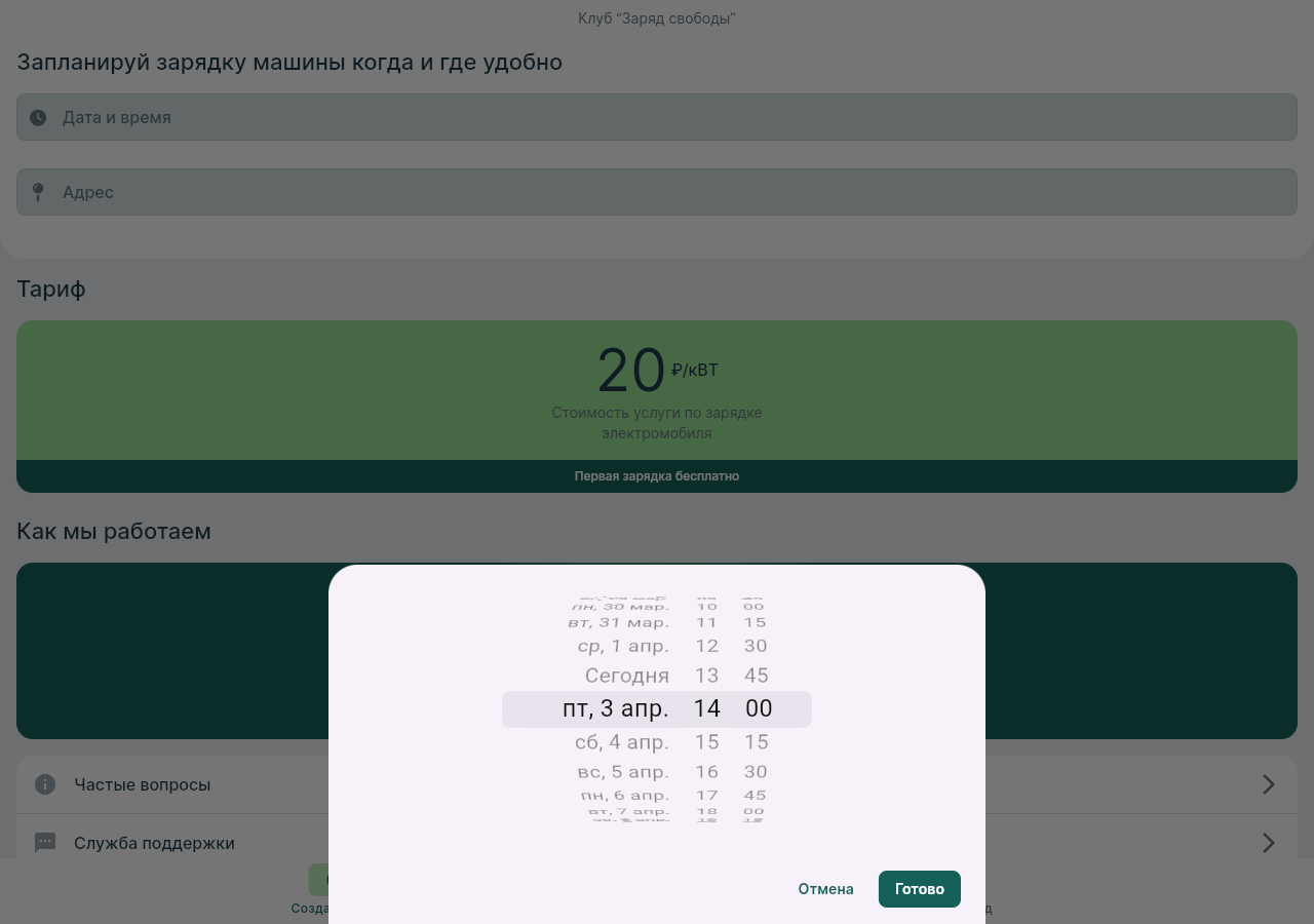 | 1 | Client | Block 0 — Setup | PASS | Landing page загружена. Семантика Flutter активирована. Дата/время успешно заполнены через iOS-пикер: пт 3 апр. 14:00 ✓ |
