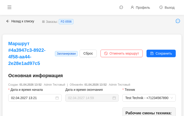route-20270402-technik-4a39 подтверждает неверный год. Вероятно, оператор ошибся при вводе года. Это могло стать причиной того, что система не обновила статус заказа до ASSIGNED.